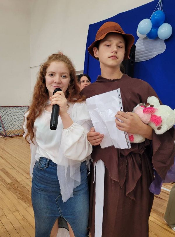 Uczniowie z radością opowiadali o świętych, za których się przebrali, a ich zaangażowanie zostało nagrodzone drobnymi upominkami. Nie brakowało również tańców i śpiewu przy rytmach religijnych piosenek — radość i wspólnota wypełniły całą salę!