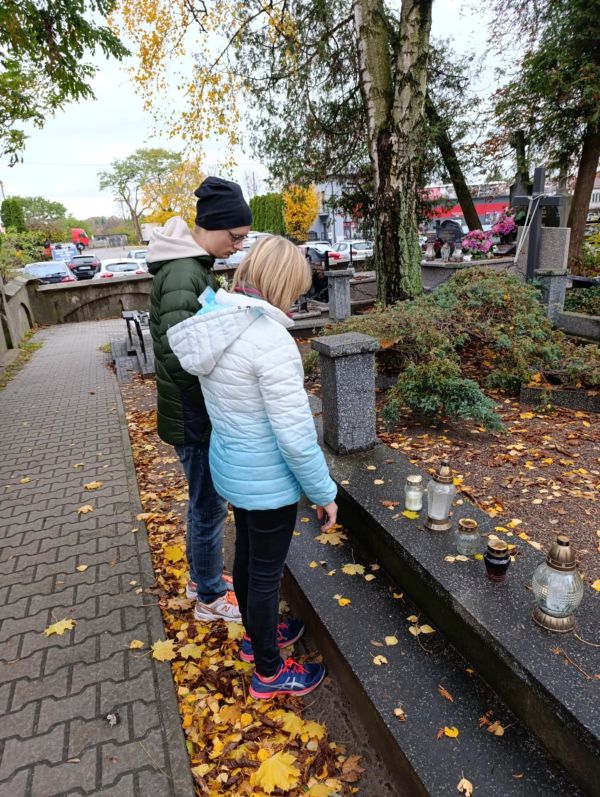 Z WIZYTĄ NA CMENTARZU Opublikowano: 29 październik 2025 Marzena Odsłony: 12 Pamiętamy o tych, co odeszli. Klasa 3 pps i 7ua/8usa z wizytą na cmentarzu parafialnym w Ciechanowie. Kategoria: AKTUALNOŚCI I OGŁOSZENIA