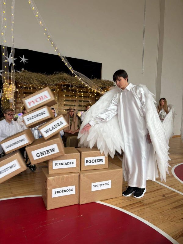 W naszej szkole odbyły się jasełka bożonarodzeniowe we współczesnej odsłonie. Przedstawienie nawiązywało do tradycji Bożego Narodzenia, ukazując jej przesłanie w realiach bliskich dzisiejszemu życiu.