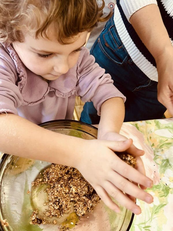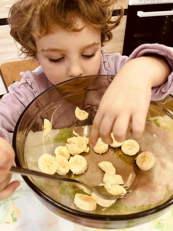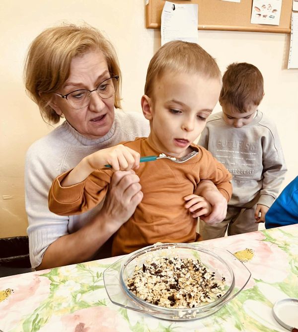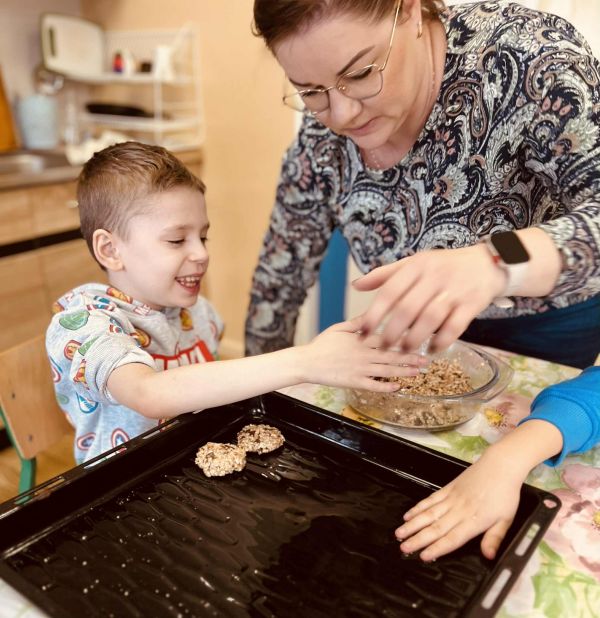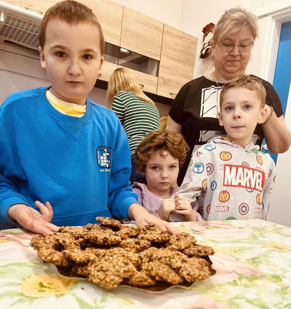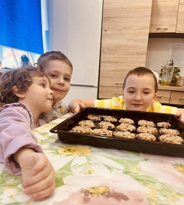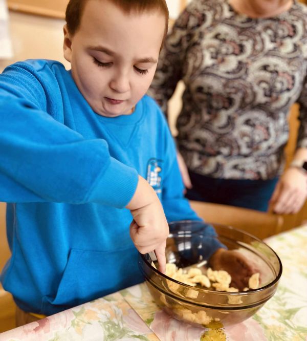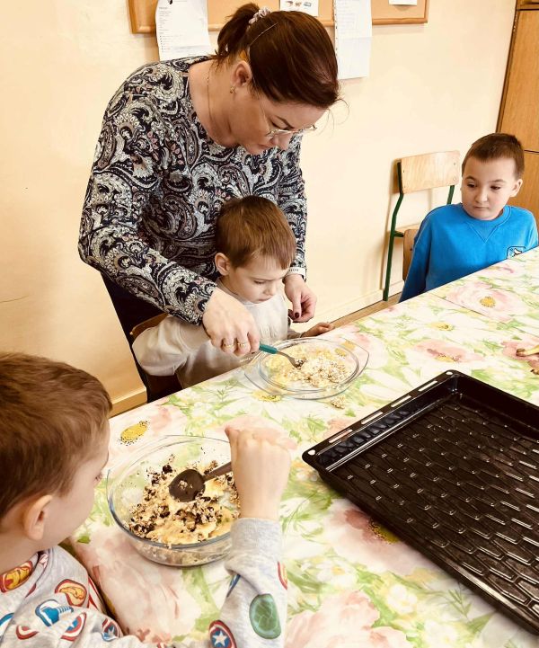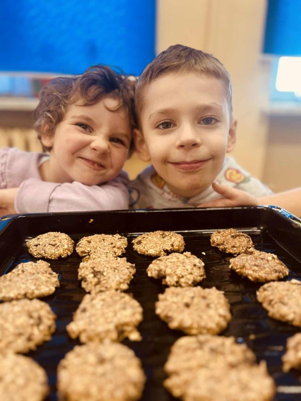 Nasze przedszkolaki pracowały, ucząc się współpracy i integracji. Tym razem dzieci upiekły owsiane ciasteczka. Było trochę wysiłku, dużo śmiechu, a efekt końcowy — pyszny i udany.