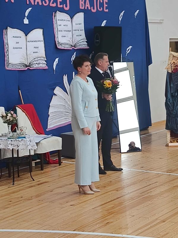 Otrzymaliśmy piękne życzenia od p. Starosty R.Morawskiego oraz od Rady Rodziców, która również ufundowała róże. Na koniec uczniowie - aktorzy rozdawali słodką niespodziankę.