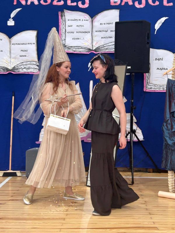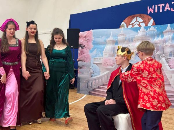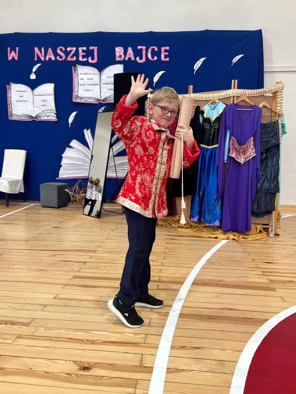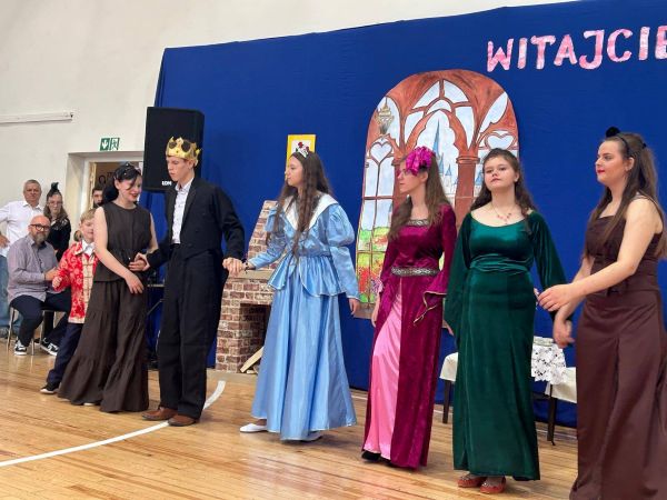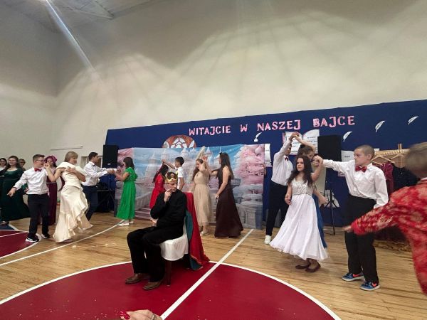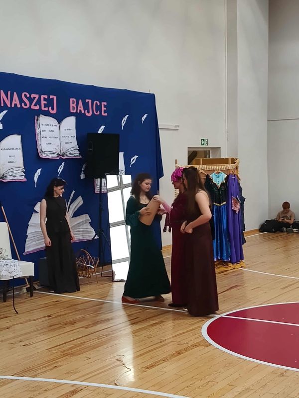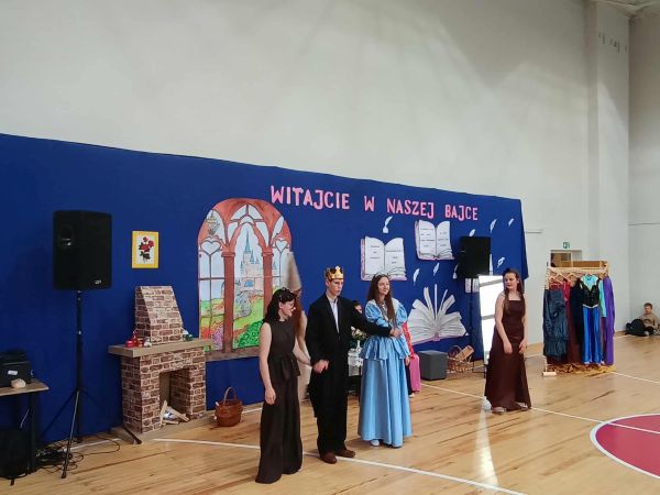 Na scenie jako pierwsi wystąpili członkowie koła tanecznego, którzy zachwycili publiczność żywiołowym tańcem pt. „Kredki”. Następnie nasi utalentowani uczniowie przenieśli wszystkich w bajkowy świat i w pięknej scenografii wystawili przedstawienie teatralne pt. „Kopciuszek”. Występ zdobył ogromne brawa i spełnił marzenia naszych aktorów.