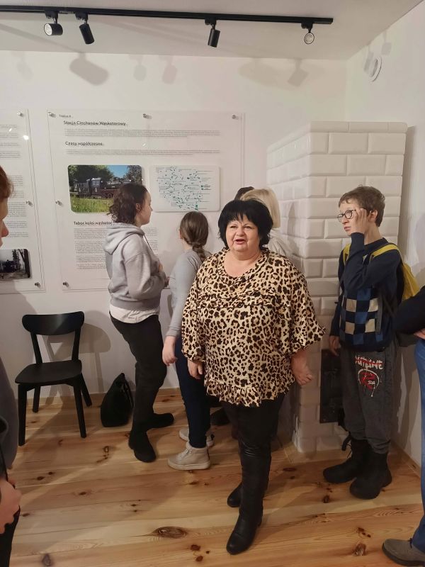 Po przybyciu na miejsce uczniowie zostali oprowadzeni po obiekcie, gdzie mogli zobaczyć liczne eksponaty związane z różnymi etapami rozwoju kolei. Pani Przewodnik ciekawe opowiadała o codziennej pracy kolejarzy, dawnych technologiach oraz zmianach jakie zaszły na przestrzeni lat w komunikacji kolejowej.