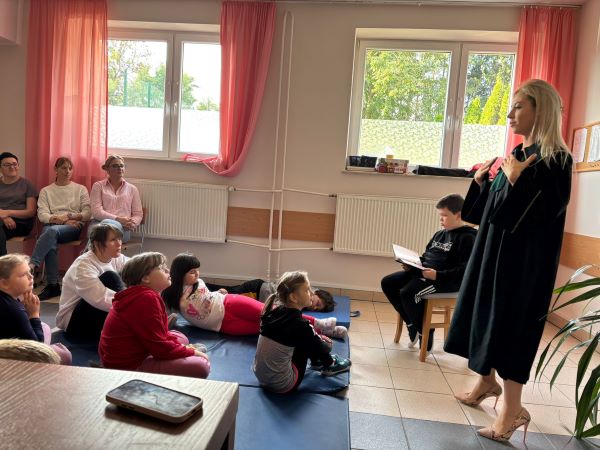 Dzieci wysłuchały bajki pt. „Leśne sprawy aplikantów adwokackich”, która dotyczyła hejtu w Internecie, tajemniczej nagrody i kreciej roboty pod willą "lipa". Spotkanie cieszyło się zainteresowaniem uczniów, którzy podjęli chętnie dyskusję dotyczącą dobrego zachowania w Internecie