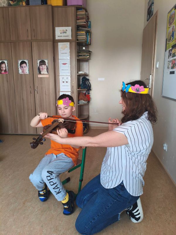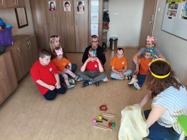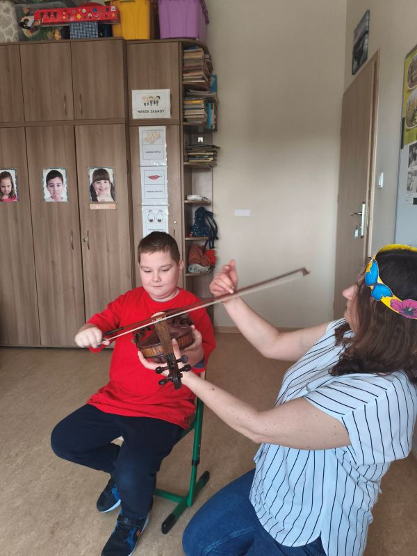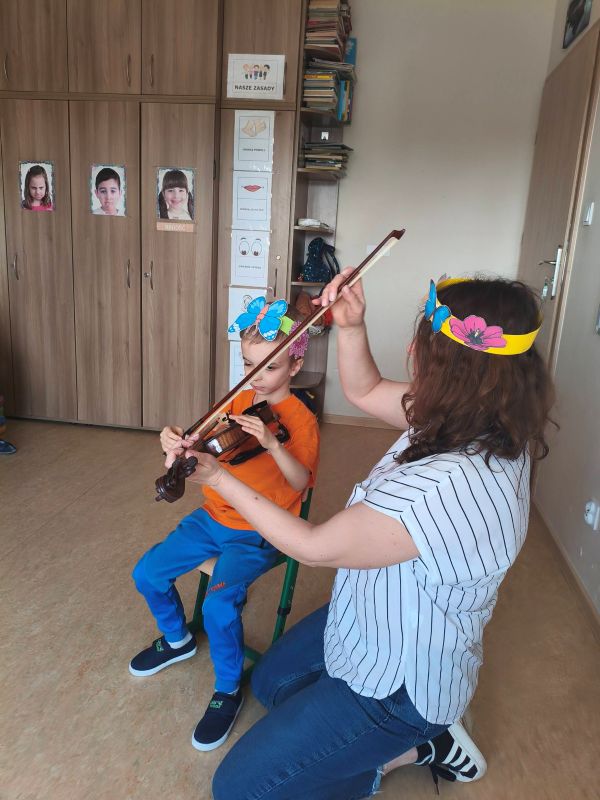 Dzieci z ogromnym entuzjazmem poznawały różne instrumenty i próbowały swoich sił w grze, tworząc własne, małe orkiestry. ![]()