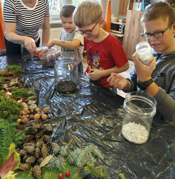 Droga powrotna również okazała się pełna atrakcji. Uczniowie podziwiali barwne korony drzew, zbierali kolorowe liście, kasztany, a niektórzy nawet grzyby. Wycieczka była doskonałą okazją do nauki w terenie, wspólnej zabawy i zachwytu nad urokiem polskiej jesieni. Z pewnością na długo pozostanie w pamięci wszystkich uczestników.